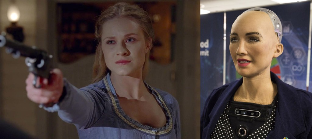 目前最接近電影裡的人工智慧機器人,非蘇菲亞莫屬,她的研發旨在學習和適應人類的行為、與人類一起工作,並在世界各地接受採訪。曾有一位資深記者問她:『對 HBO 的《西方極樂園》,你怎麼看?』索菲亞也幽默地回答:『我認為它在警告人類不應該對機器人做什麼。人類應該好好對待機器人,採取行動前要取得機器人的同意,不要相互欺騙。』