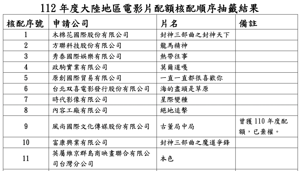 - 探討目前文化部對大陸電影配額的限制原因與內容
