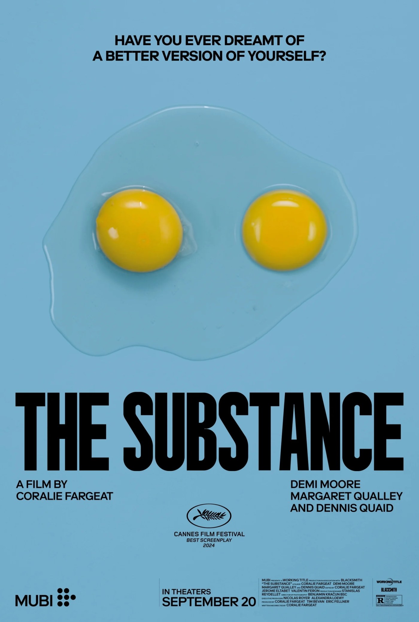 如果說《整容液》用最獵奇的動畫風格來呈現,那電影《懼裂》則是主打最寫(血)實、最露骨的方式來換取青春,巴不得觀眾都跟女主角依樣面臨各種苦難,必須在掙扎中做出選擇。劇情描述資深女星伊莉莎白在影壇浮沉多年後,面對娛樂產業對年齡與外貌的殘酷審判,不甘心自己在鏡頭前逐漸被「蒸發」。因緣際會下,她得到一個『以全新的自己』重返鎂光燈下的機會。