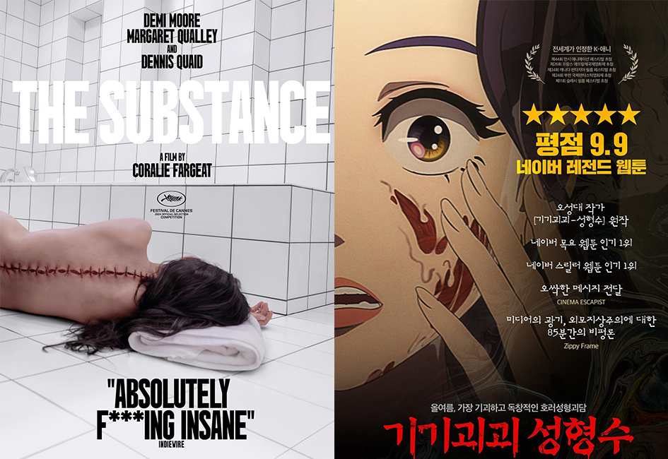 這兩部作品的相同點,皆透過非常有張力的畫面探討對美的極端追求所帶來的後果,可以說是一針見血,刀刀見骨,絕對能讓觀眾深切反思當代審美價值。畢竟社群平台,明星代言的廣告早已成為我們接受美感教育的主要來源,加上醫美科技進步,變美的成本逐年降低,然而當我們一刀一針地靠近「完美」,也可能一點一滴地遠離自己。